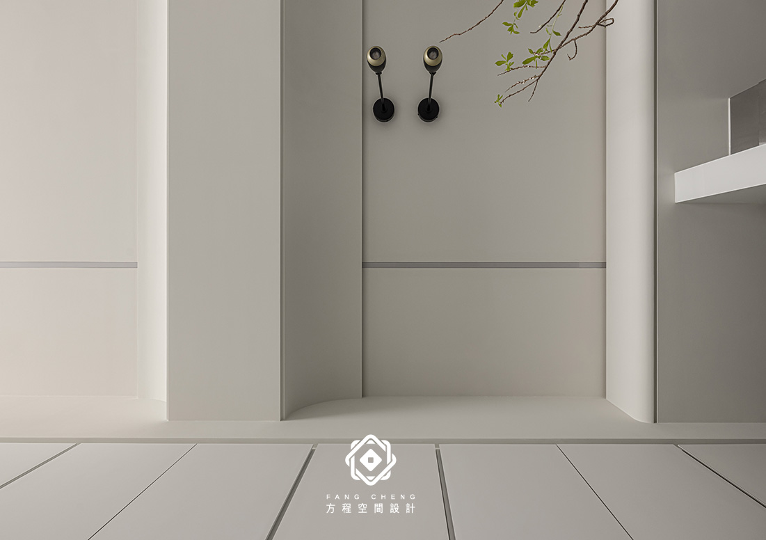 輕柔的白光沿著牆面展開,為室內描繪出純淨的框架