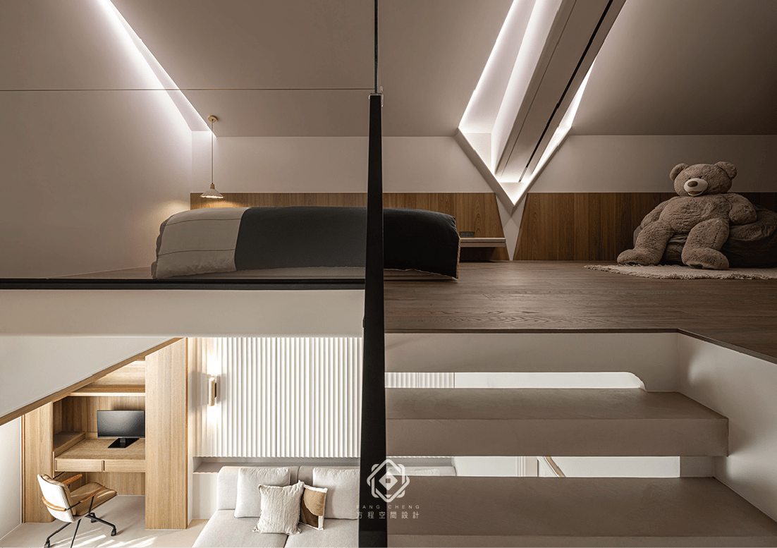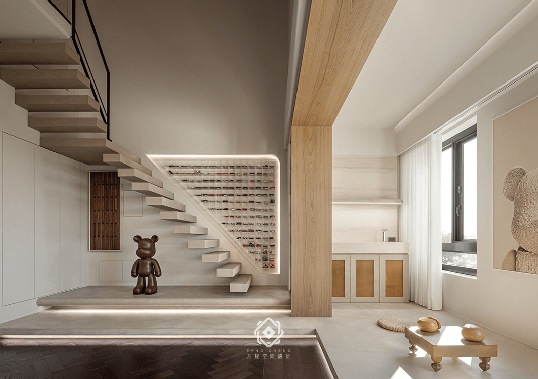 米色與木質交織出溫潤的底色,讓空間瀰漫著柔和的靜謐感